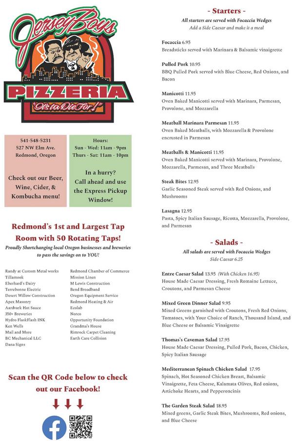 Jersey Boys Pizzeria Visit Redmond Oregon
